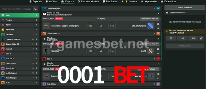 A aposta 0001 Bet oferece aos jogadores a experiência mais conveniente de apostas em eSports!